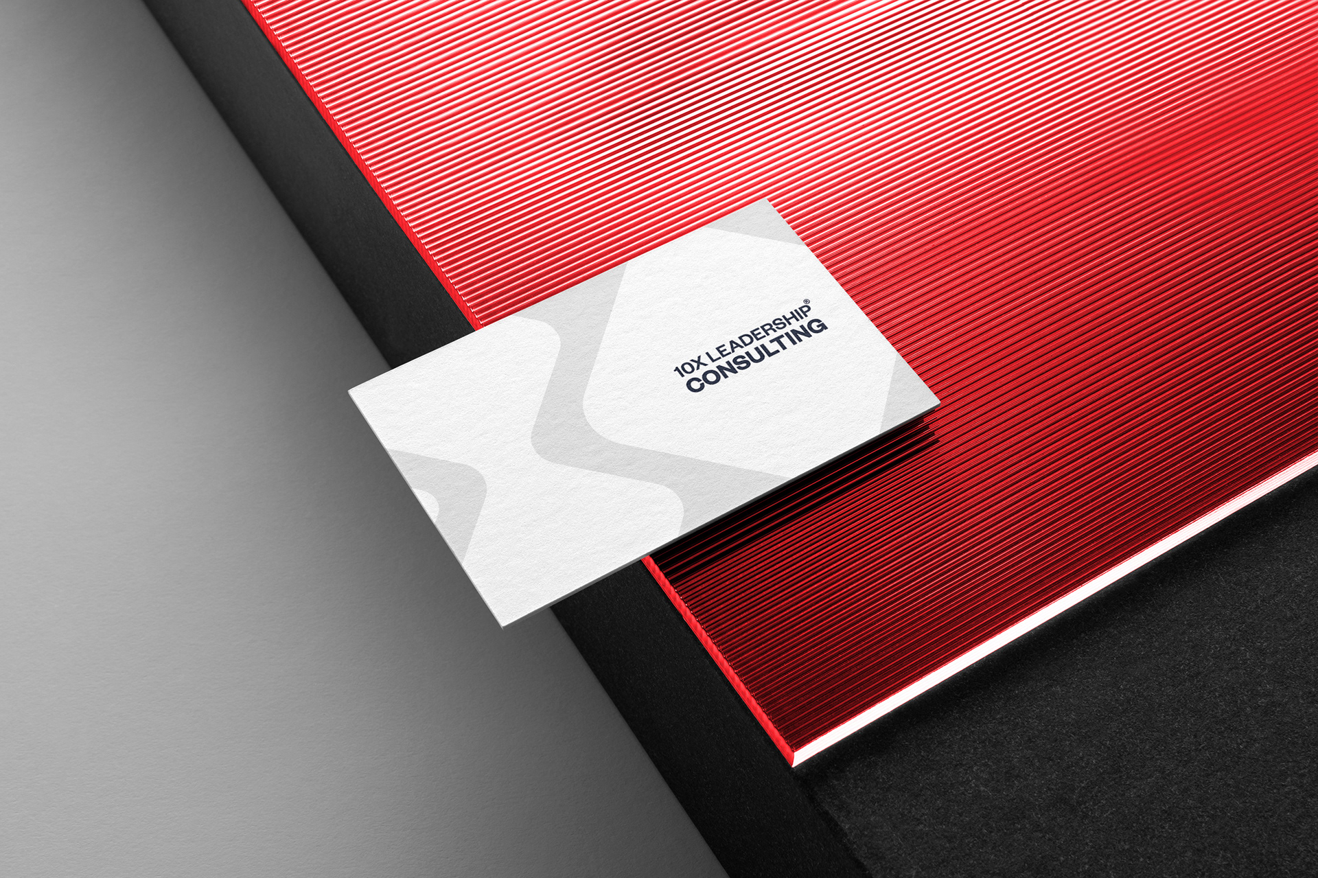 The logo design reflects the process a team or company undergoes within this consultation and how they not only experience growth but also solidify themselves as a whole. This abstract model is modern yet conveys a classic visual that is simple enough to be impactful. The small, far left shape symbolizes a company's condition before their consultation. Then, the middle, double-squared shape shows the expansion they will experience through working with 10X. Finally, the design ends with an expanded version of the original shape. This signifies the merger between the company's new development from the program, expressing their mission to assist companies in operating at maximum efficiency. In order to preserve the company's value in classic and lasting branding, Founders Grotesk font was used to cultivate a sophisticated style and appearance. The entire logo is comprised of muted red, blue-black, and soft gray, giving the brand an overall peaceful yet traditional presentation.